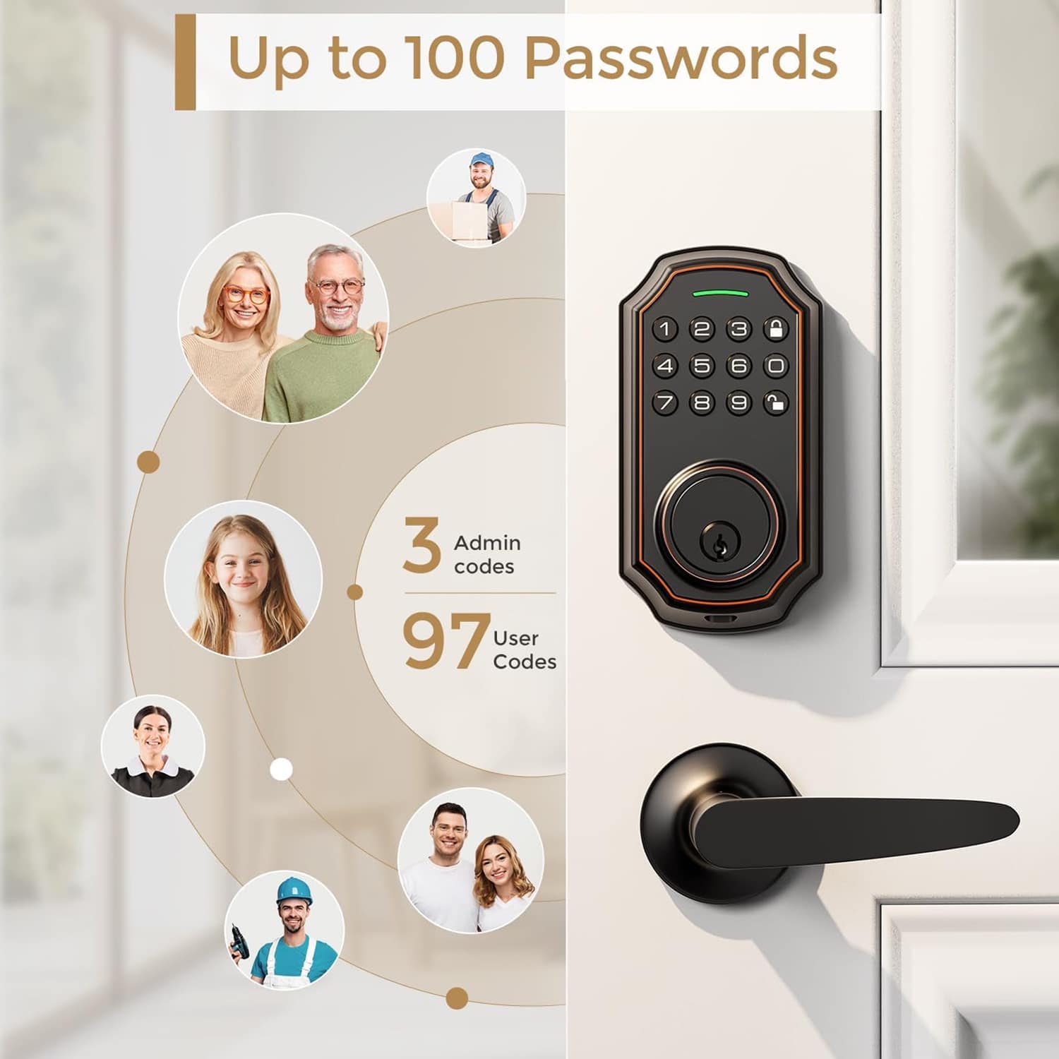 The ClavisLok Smart Locks D289L can store up to 100 fingerprints, making it perfect for families, roommates, or small businesses needing multiple authorized users with personalized access privileges.