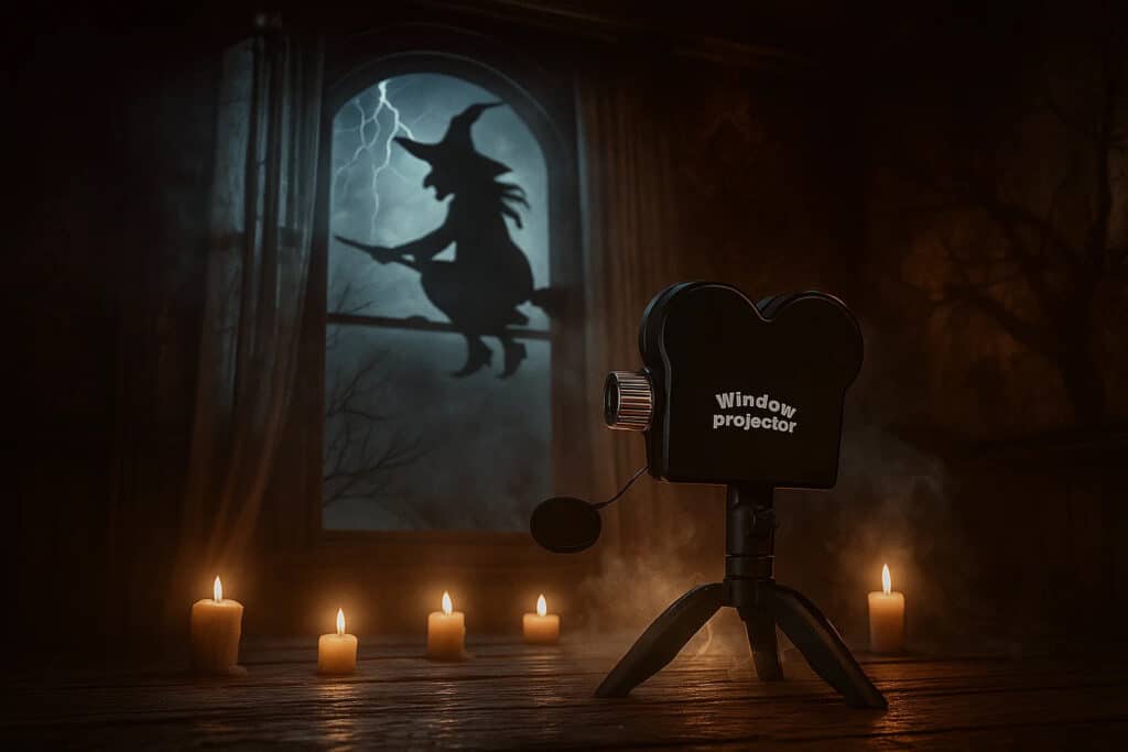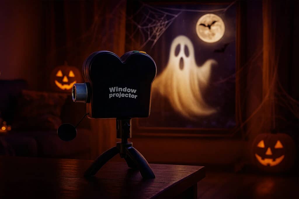 Simply press the one-touch button to cycle through all 12 built-in movies, including 6 Halloween and 6 Christmas themed projections.