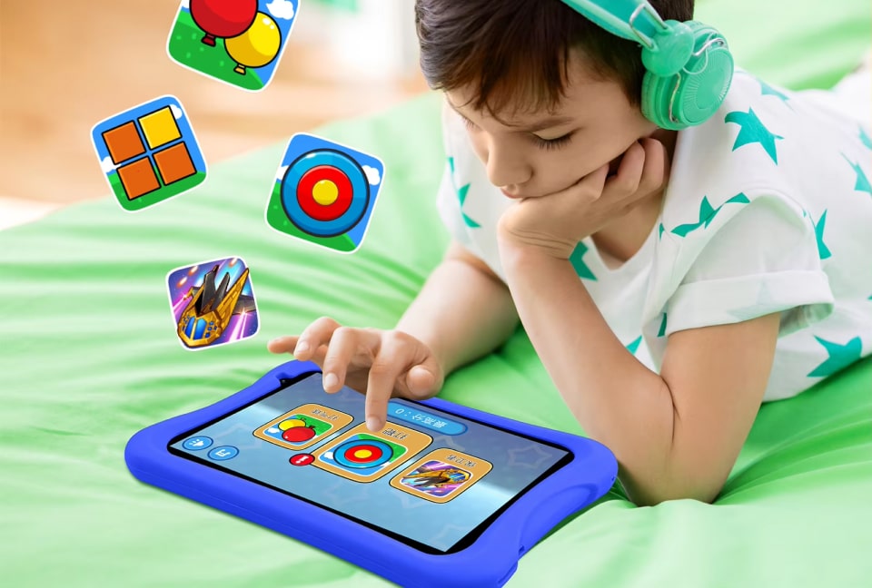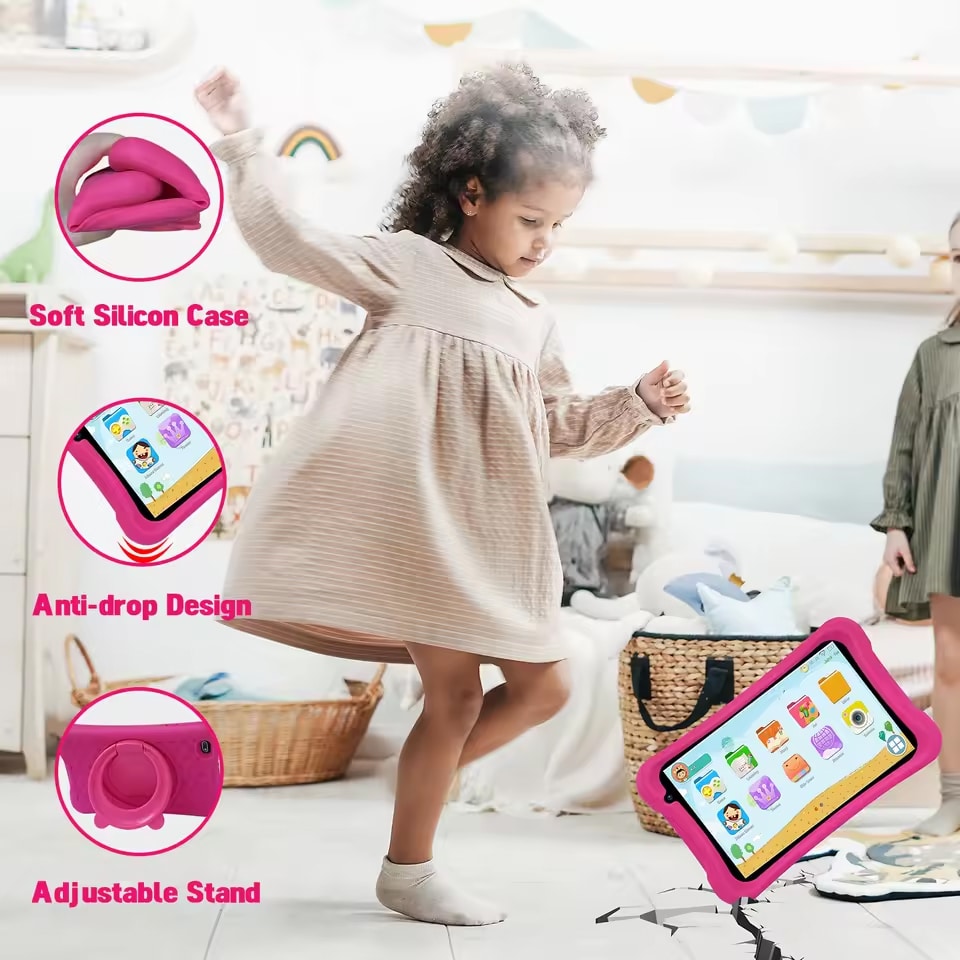 The KidzPjo Tablet features a durable silicone case that protects it from drops and bumps, making it ideal for active kids and everyday use.