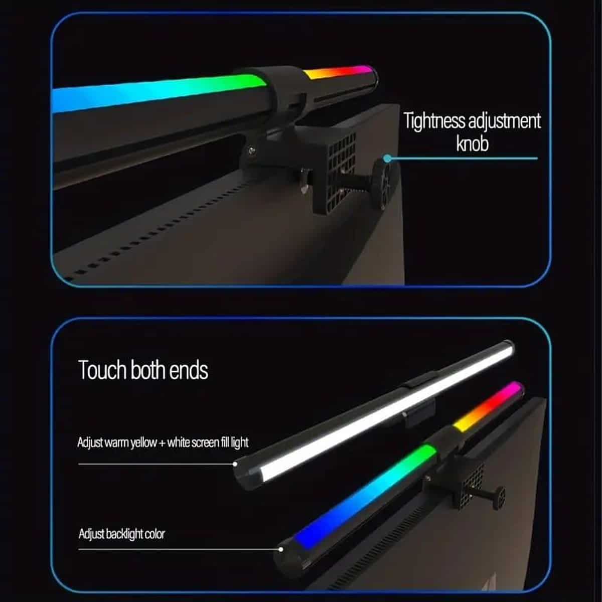 The Liupway Monitor Light Bar uses advanced eye-care technology to eliminate glare and flickering, reducing eye strain during prolonged screen time. Its ambient lighting creates a soothing atmosphere for comfortable viewing.