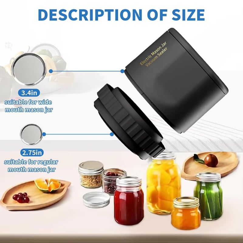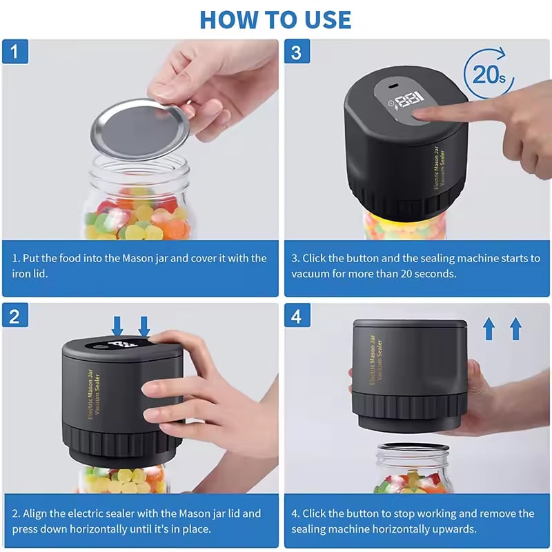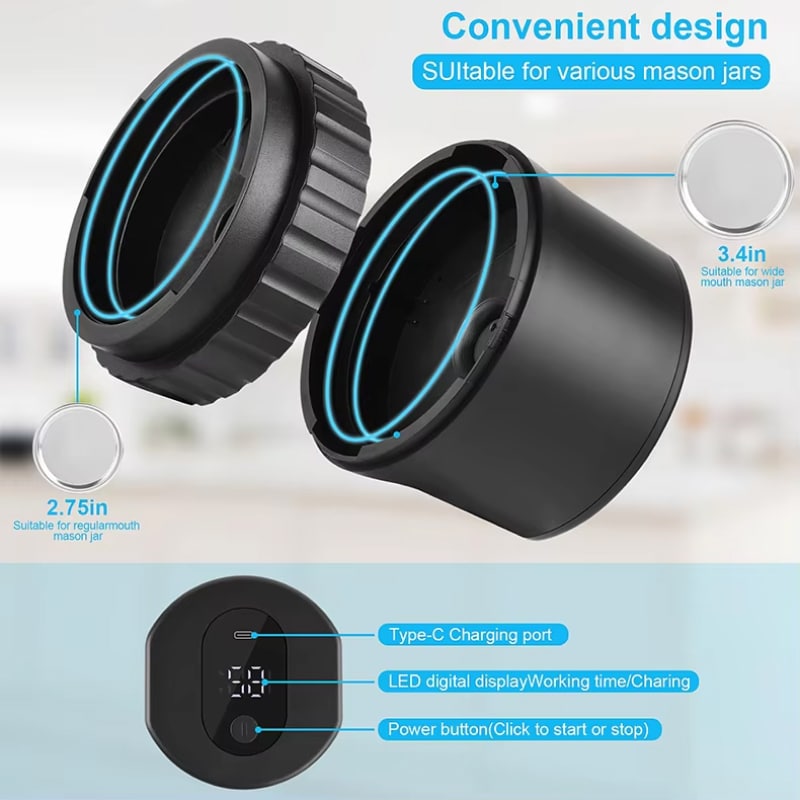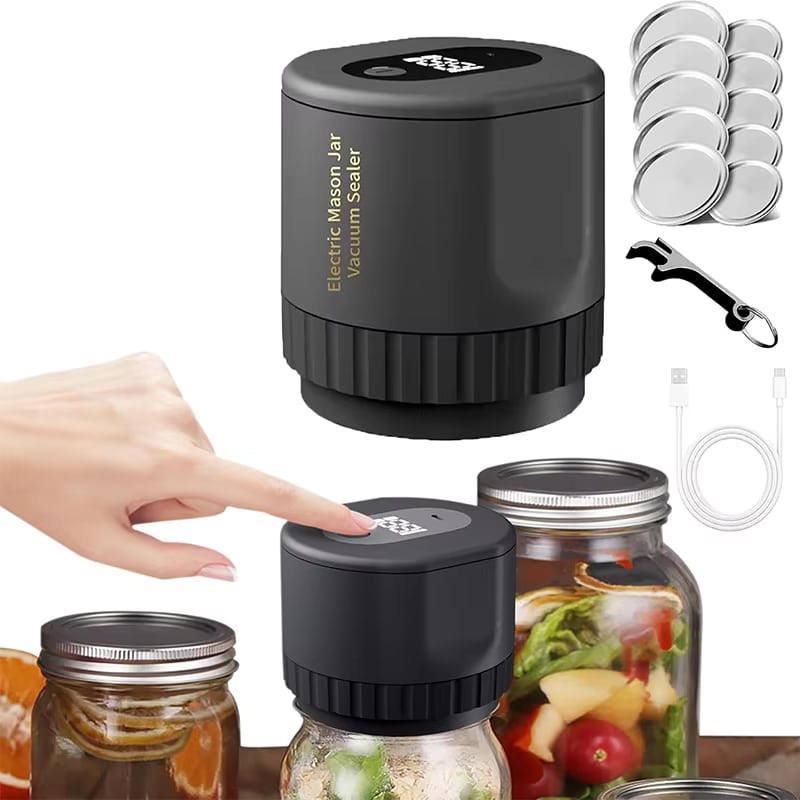 The powerful 2000 mAh battery provides weeks of regular use, typically sealing 40-60 jars per charge depending on jar size. The convenient Type-C charging ensures quick recharging when needed for continuous preservation.