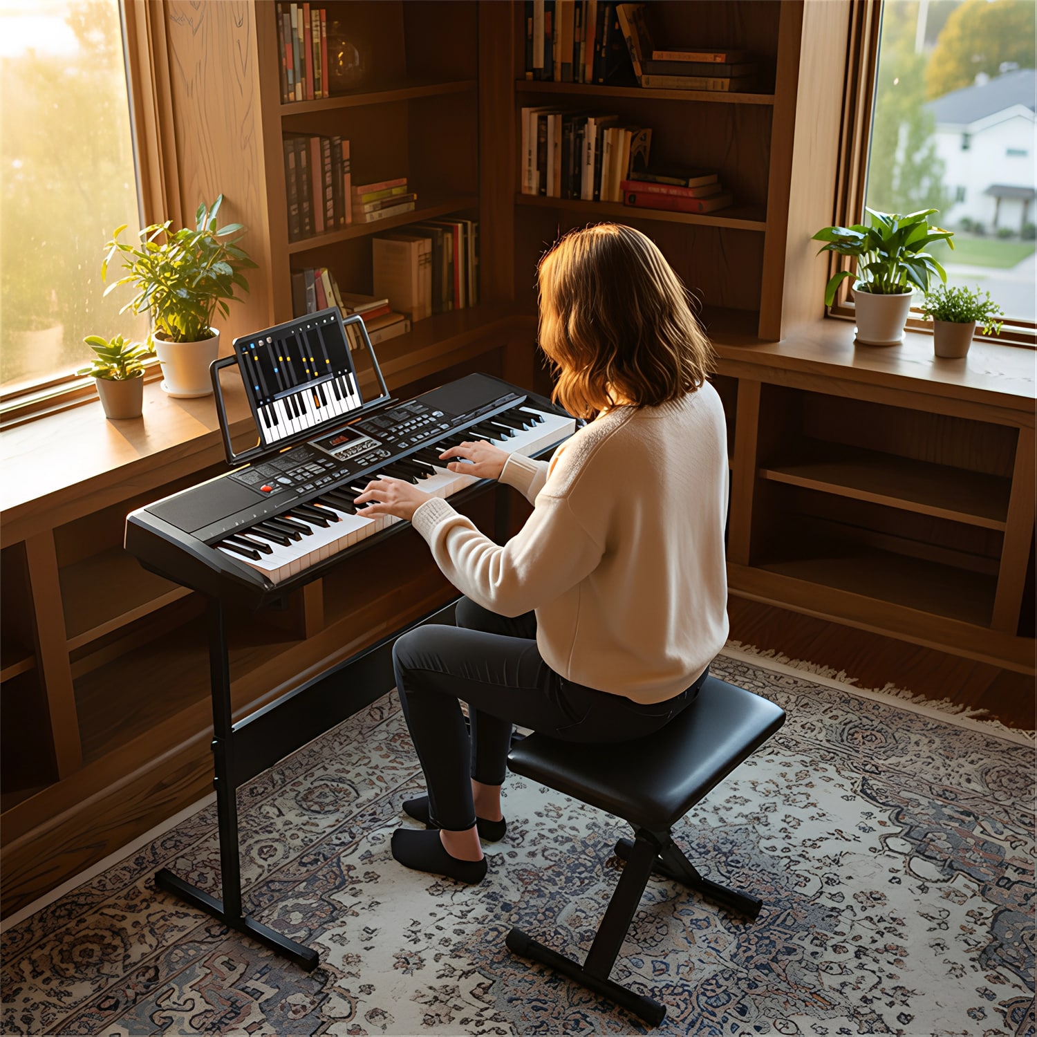 The adjustable furniture makes this keyboard suitable for ages 6 and up through adults. The light-up teaching keys particularly benefit children and absolute beginners, while the advanced functions challenge more experienced players.