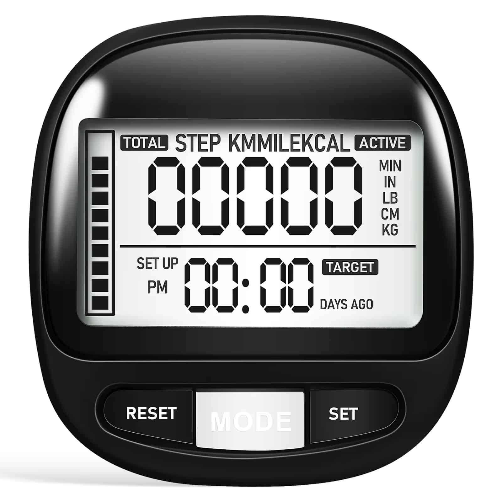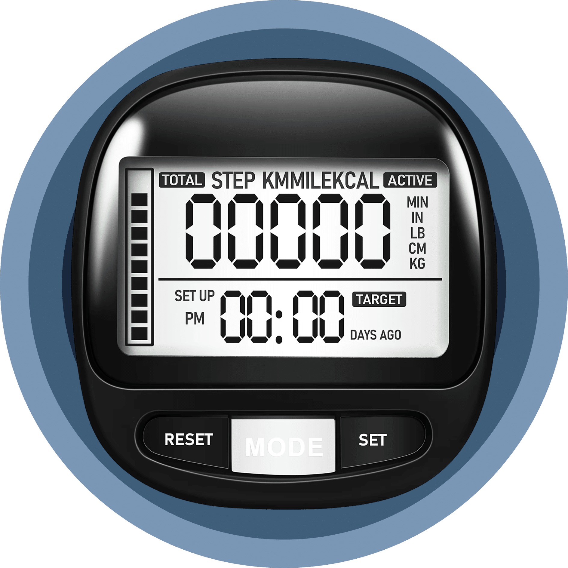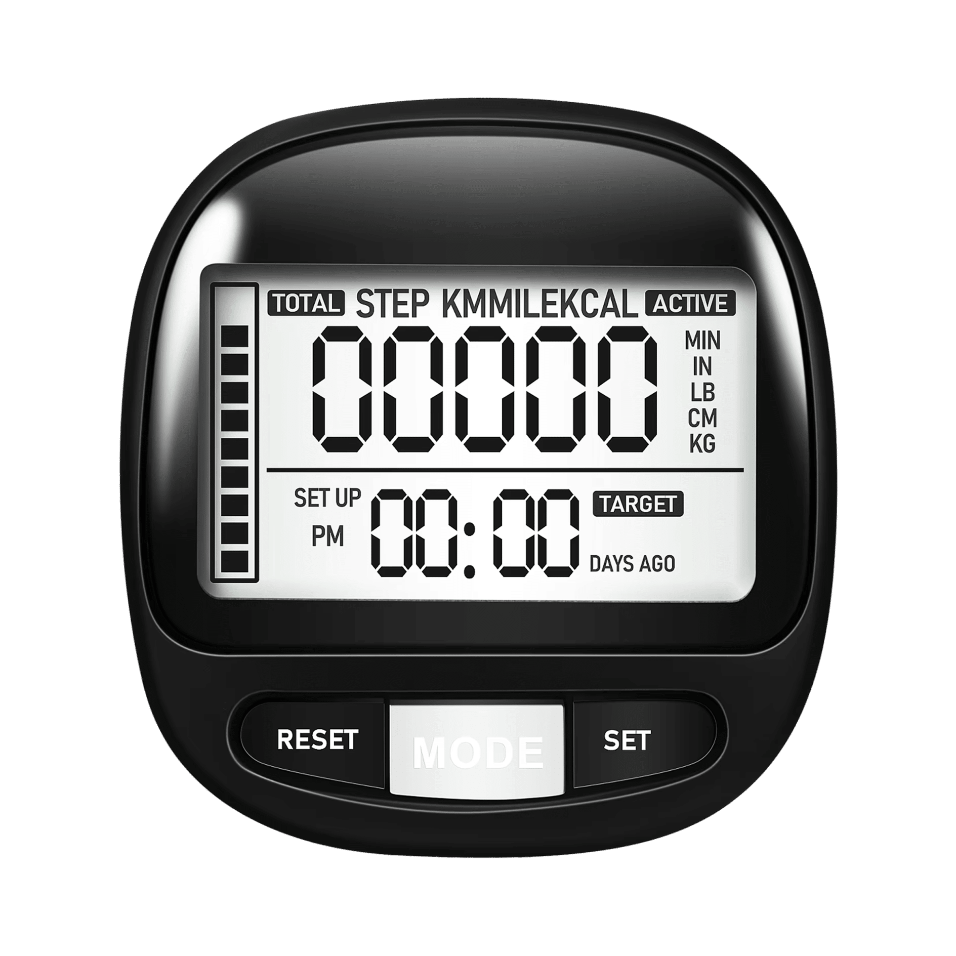 Het resetten van de PacerTrad Pedometer is eenvoudig: houd de knop ingedrukt tot het display teruggaat naar nul, klaar voor een nieuwe dag.