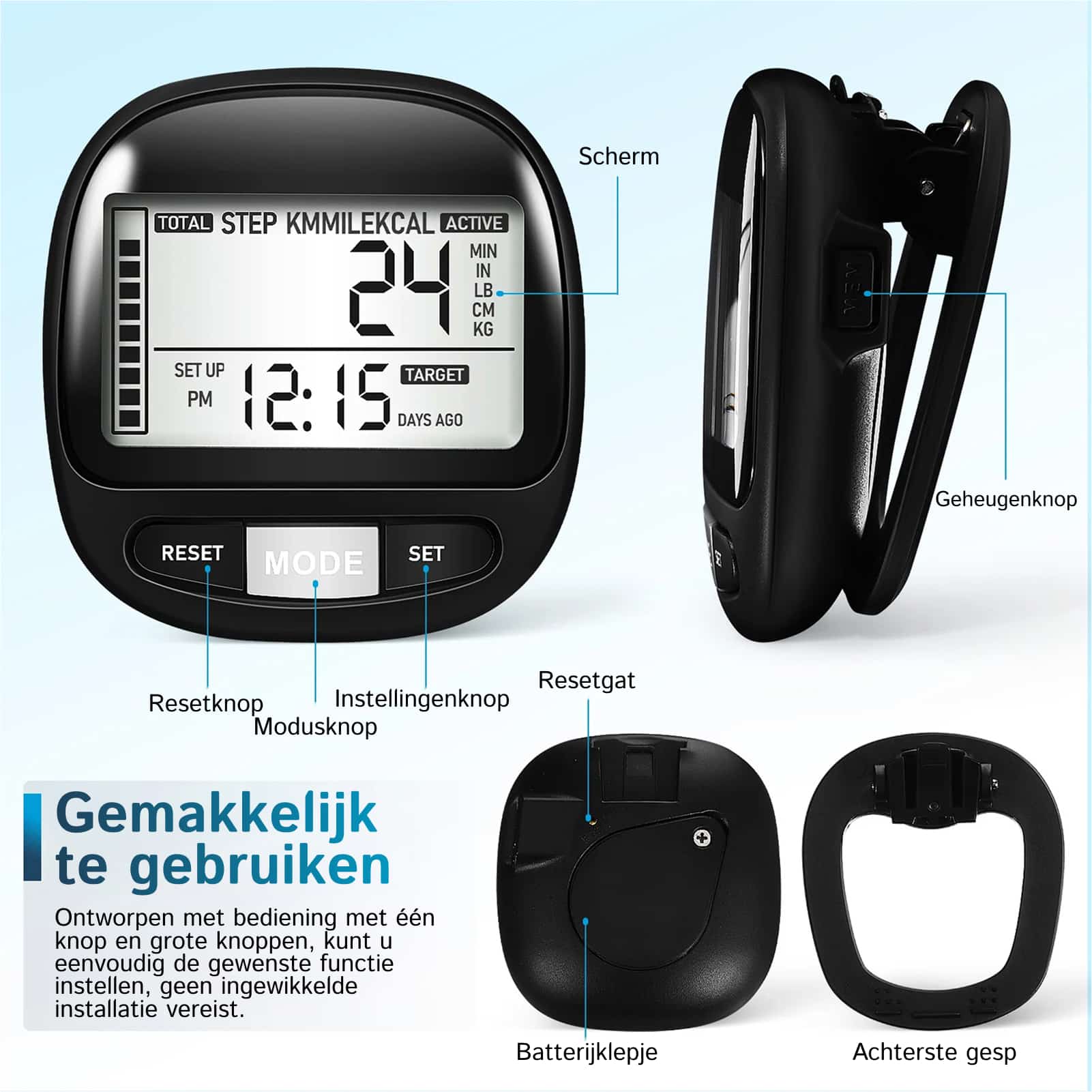 De batterij van de PacerTrad Pedometer gaat tot 6 maanden mee bij normaal gebruik, waardoor je langdurig kunt genieten van ononderbroken monitoring.