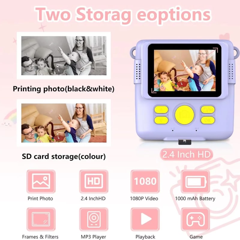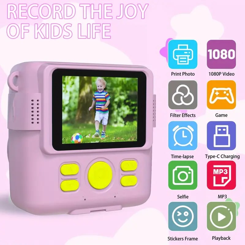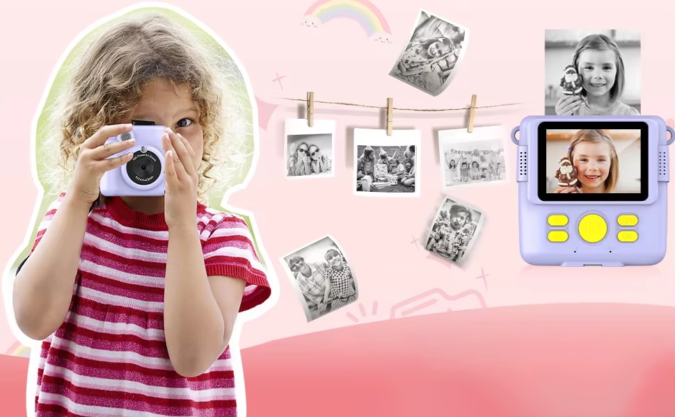 PixPozen Print Cameras are specifically designed for children ages 3-12, featuring ergonomic design, large buttons, and intuitive controls that accommodate different developmental stages and hand sizes perfectly.