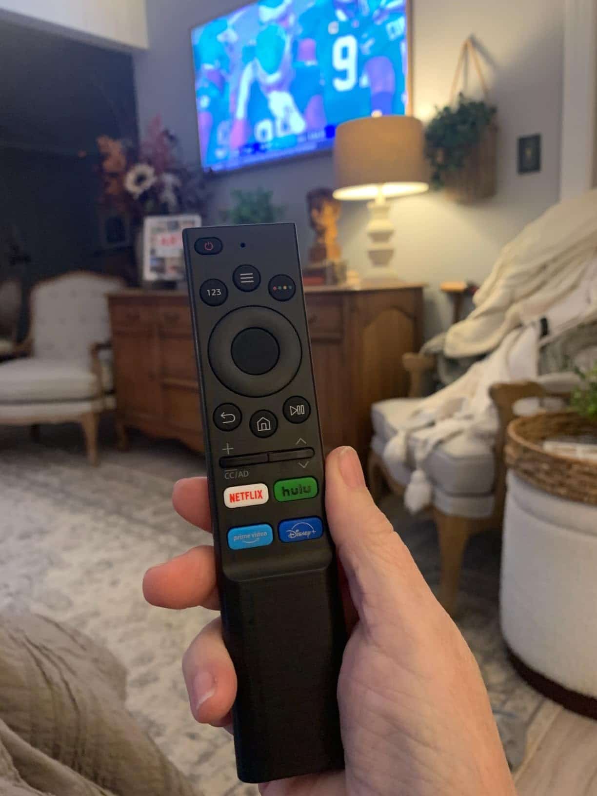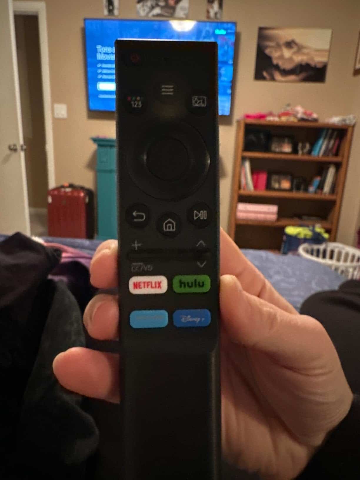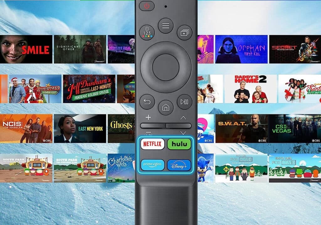 Streaming buttons require your Samsung TV to support these apps. If a button doesn't respond, your TV model may not have that app pre-installed or available.