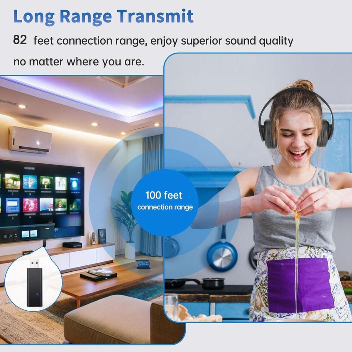 SonicVuex TV Headphones maintain stable connectivity up to 25 meters away, allowing you to move freely throughout your home, kitchen, or adjacent rooms without losing audio quality or experiencing signal interruptions.