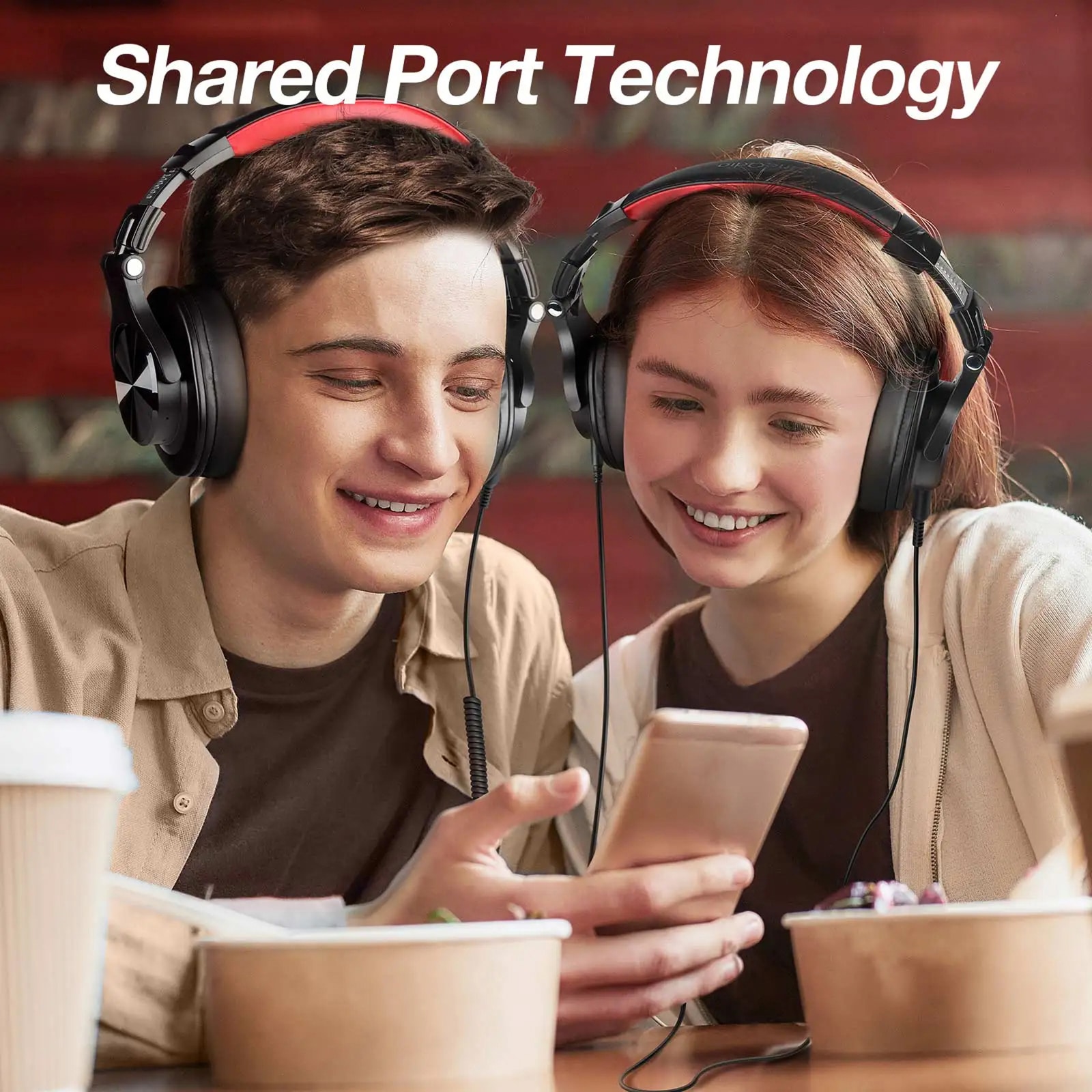 The SynxBeat v2 allows audio sharing by connecting your primary headphones to a device via Bluetooth or cable, then plugging additional headphones into the 6.35mm jack for simultaneous listening without quality loss.