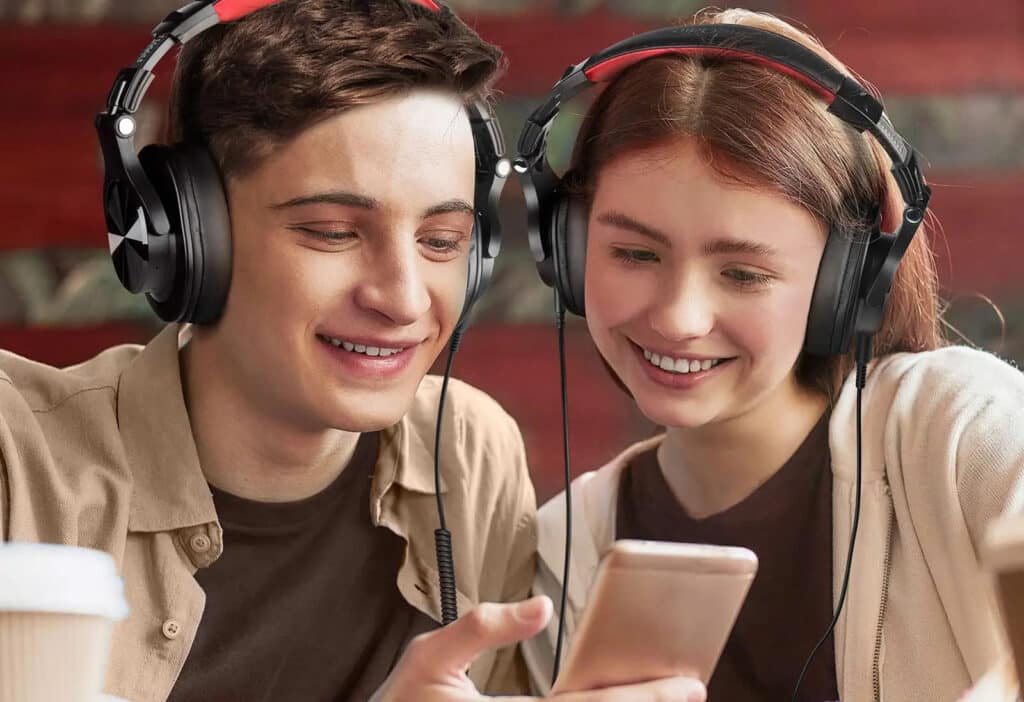 The SynxBeat v2 allows audio sharing by connecting your primary headphones to a device via Bluetooth or cable, then plugging additional headphones into the 6.35mm jack for simultaneous listening without quality loss.