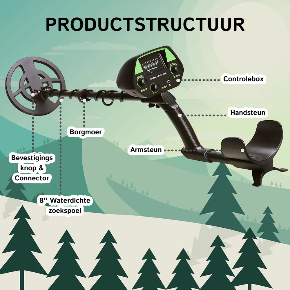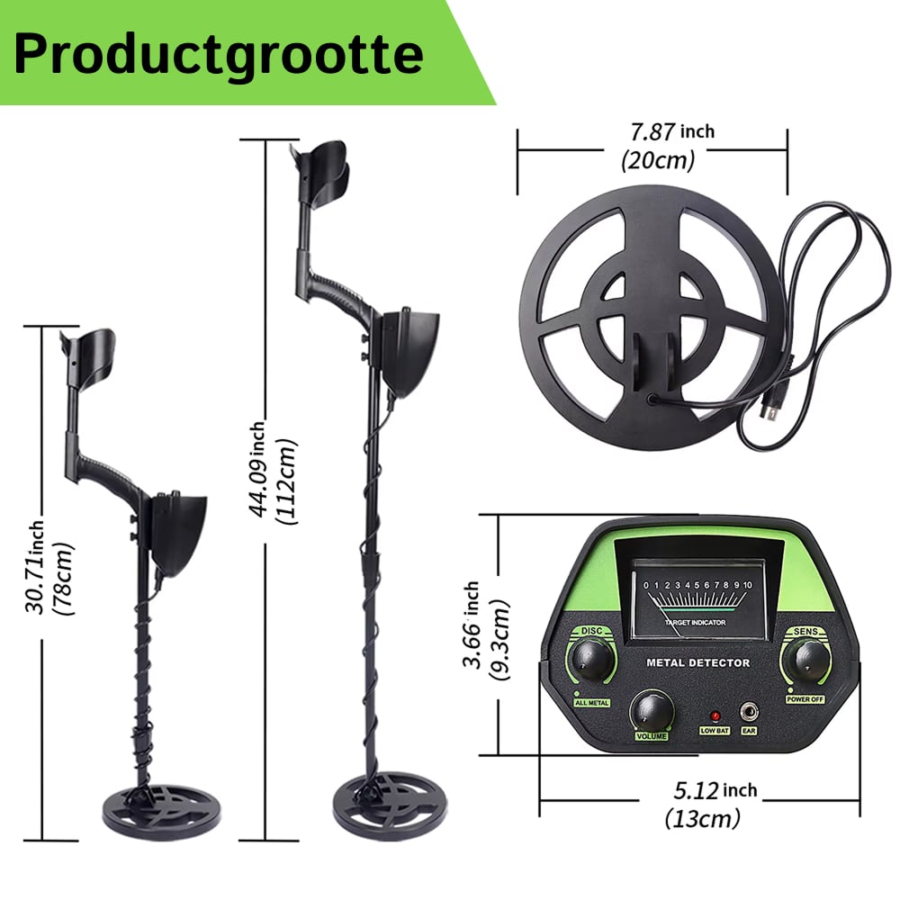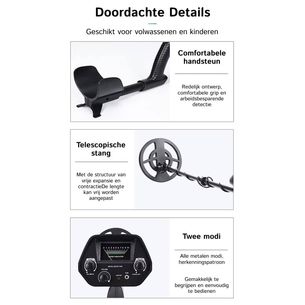 De TreaXpert Metaaldetector kan metaal detecteren tot een diepte van 30 cm, afhankelijk van de grootte en het type metaal. Perfect voor het vinden van zowel grote als kleine objecten.