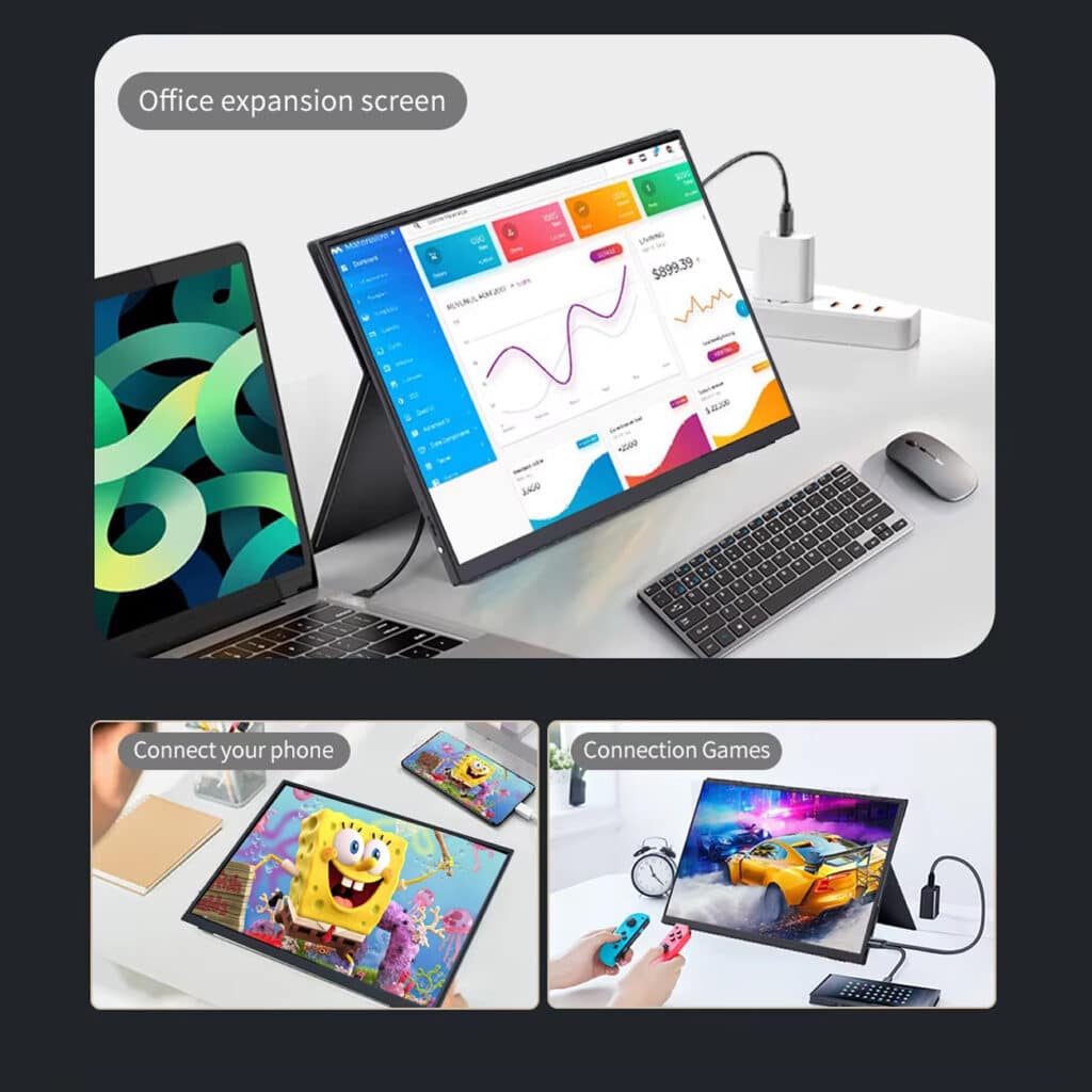 Transform any space into your ideal workspace with VezeeMax’s portable monitor. The 15.6-inch FHD display delivers stunning visuals while maintaining ultimate portability and versatility.