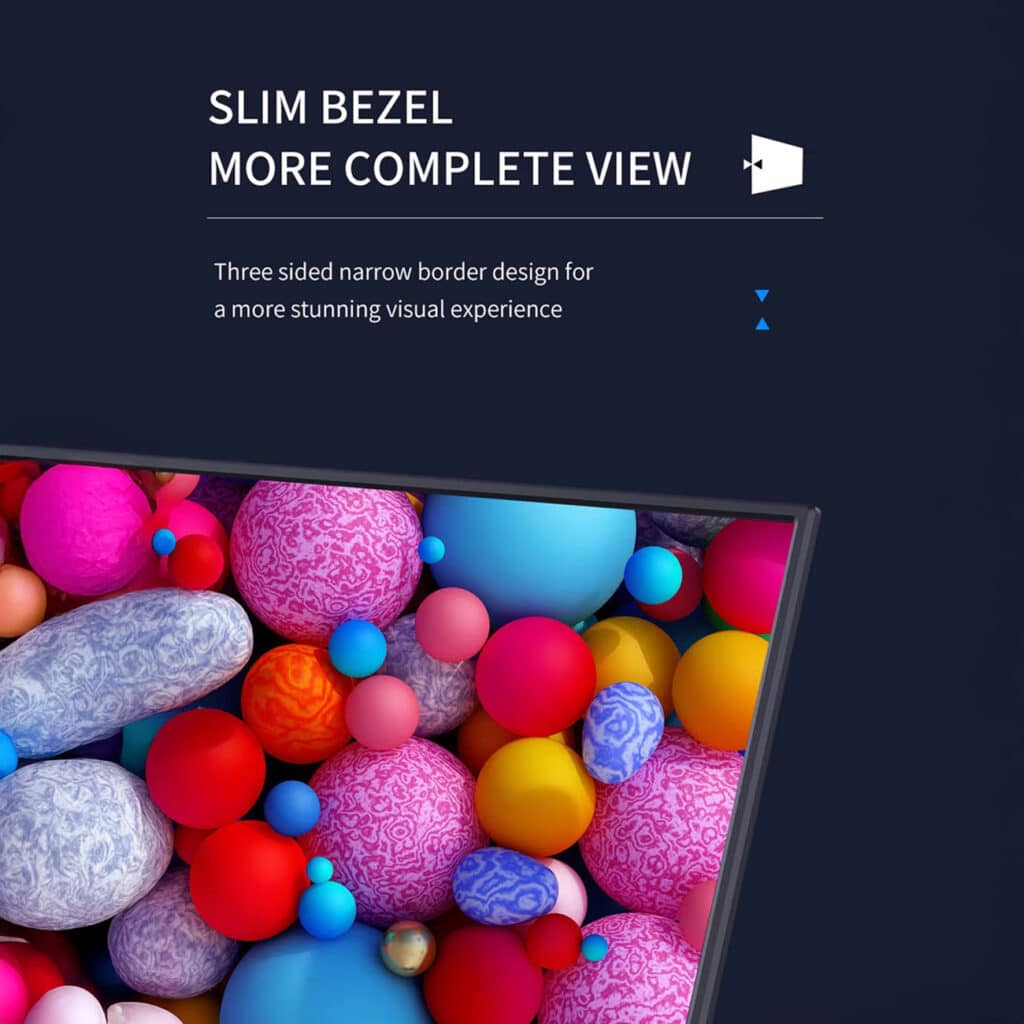 Slim bezel with three-sided narrow border maximizes screen real estate while maintaining portability.