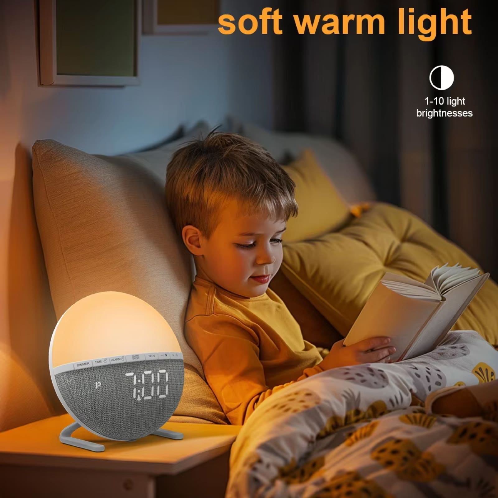 The WakyTick Sunrise Alarm Clock is more than just an alarm—it’s a versatile bedside companion. Its compact design fits seamlessly into any bedroom, while its multifunctional features make it ideal for reading, relaxation, and waking up naturally.