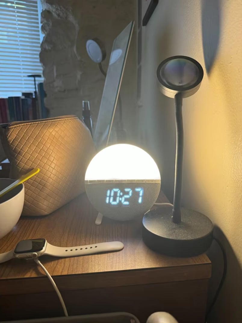 WakyTick’s sunrise simulation gradually increases light intensity over 30 minutes, mimicking natural dawn to gently wake you up without the shock of a traditional alarm.
